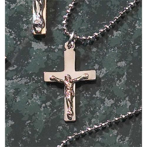 Silver Plated Box Crucifix with Gold Plated Corpus on 18 inches Bead Chain