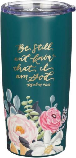 Keep a comforting, warm drink ready when you use the Be Still Teal Floral Stainless Steel Travel Tumbler for your morning coffee and morning devotions. The Be Still Teal Floral Stainless Steel Travel Tumbler also makes a particularly charming gift for a friend when you combine it with additional items from the collection.
