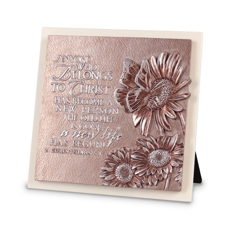 Cast stone plaque with an MDF base. Metallic gold / silver finish. Velvet easel-back and wall-hanging option.