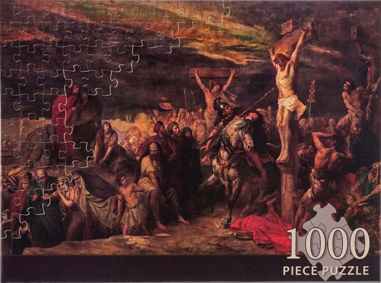 Engage with the crucifixion account in a different, visually detailed way when you spend time putting together The Crucifixion 1000-piece Jigsaw Puzzle. This jigsaw puzzle has enough detail to challenge both children and adults.