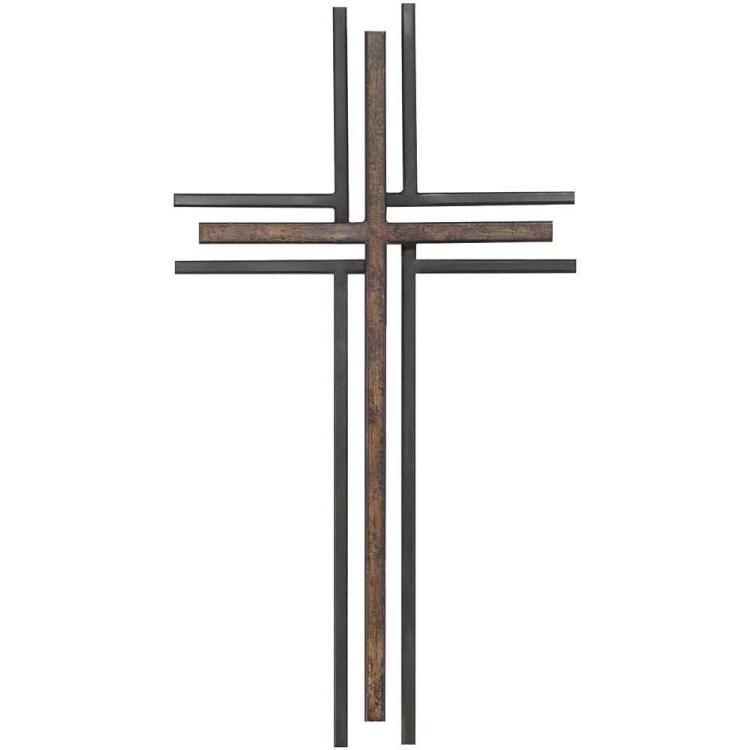 Black and bronze finish crosses combine to create a striking design! This distinctive wall cross is metal and 16″” tall. Bronze color cross has antique distressed look finish. Wonderful gift for the church or home.