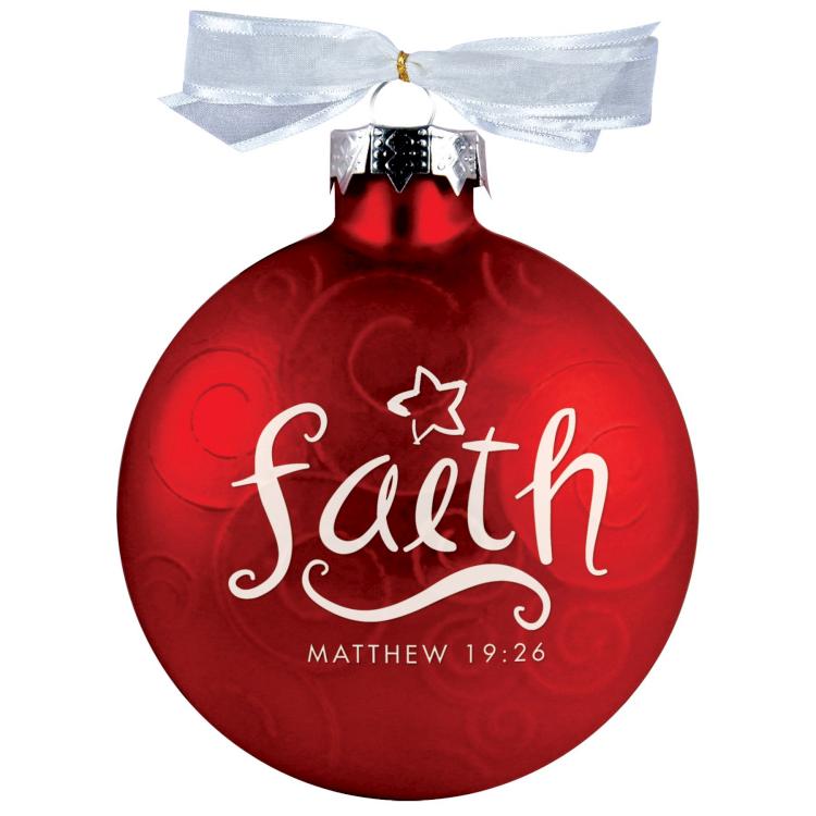This beautiful Christmas Faith ornament is made of red swirl satin glass with white ribbon to hang on your tree or to give as a gift. Matthew 19:26 is displayed on the back reminding us with God all things are possible with. Comes in a gift box. This gift makes a difference. Through partnership with the nonprofit, A Better Life For Kids, orphans and children with special needs are given healthy meals, clean water, safe housing, and education opportunities in Ghana, Africa. Material: glass, ribbon. Size: 3 1/2″” x 4″”