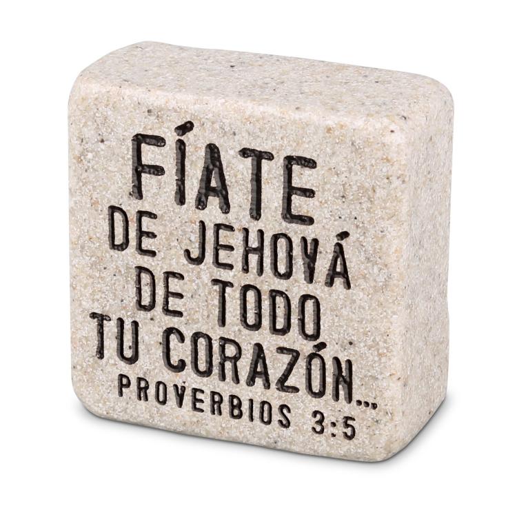 El adorno de estante de piedra guarda un mensaje poderoso en un espacio peque o. 2.5″ x 2.5″ en piedra moldeada, textura y acabado natural. “F ate de Jehov de todo tu coraz n… Proverbios 3:5-6”