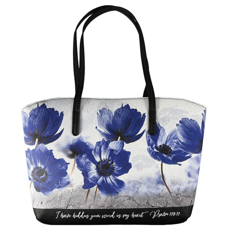 Floral Printed PU Wedge shape bible cover with 2 large oversize outside pockets ,polished Gold color cut thru cross puller, attached ribbon bookmark and elastic pen loop. Size XL.