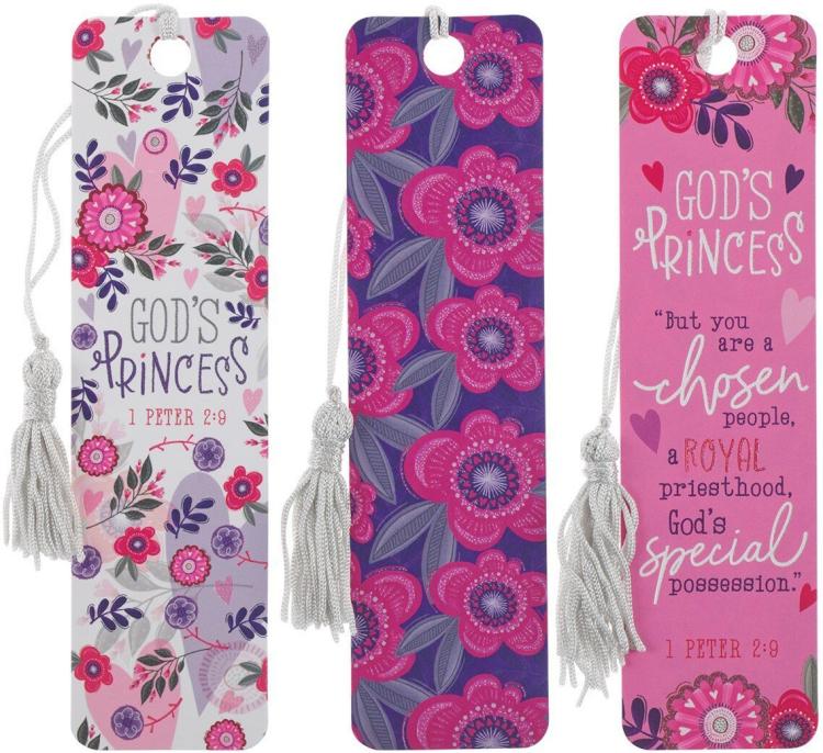 Let your little princess mark her Bible~ devotional~ and reading book in style with the God’s Princess Pink Floral Paper Bookmark Set.