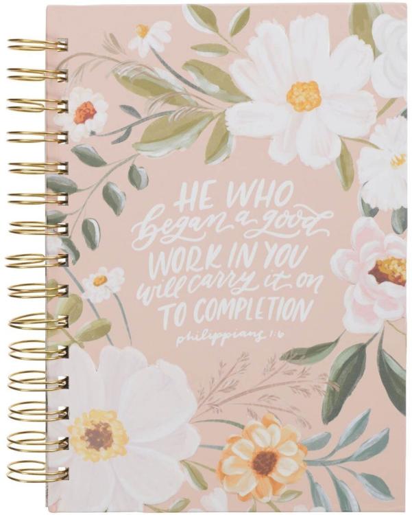Encourage your best friend in her faith when you give her the Good Work Peach Floral Spiral Journal as a reminder that God is not finished with her yet.