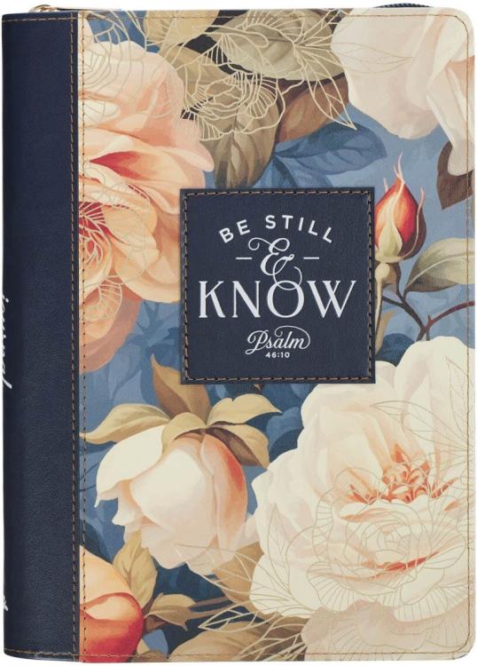Experience the calming serenity of quiet reflection with the Be Still and Know Serene Roses Faux Leather Journal with Zipper Closure. This beautifully designed companion will inspire peace and stillness in your devotional time.
