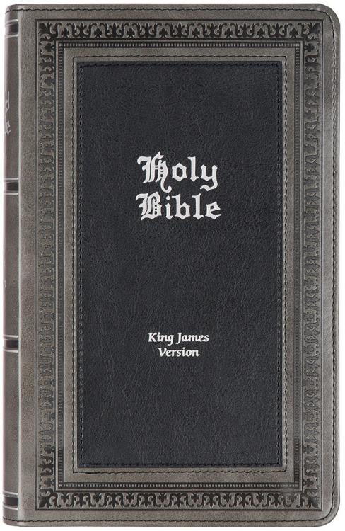 The handsome design and giant print of the Gray and Black Faux Leather Giant Print Standard-size King James Version Bible with Thumb Index makes for easy reading as you meditate on Scripture each day.