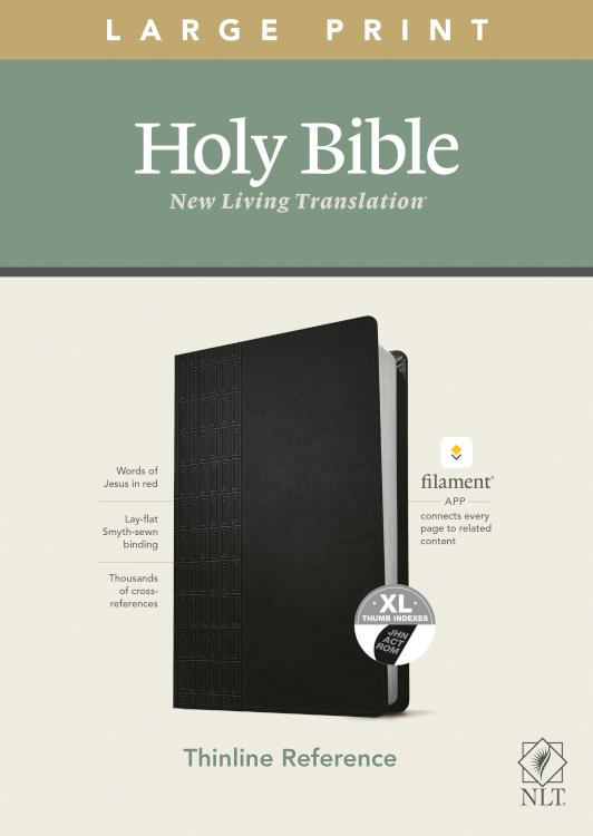 The Bible Reading Experience: ReimaginedThe new Tyndale classic NLT Large Print Thinline Reference Bible, Filament-Enabled Edition has readable text, an attractive layout, and cross-references in a thin, easy-to-carry size. And while it has the same low price as basic text-only Bibles, the NLT Large Print Thinline Reference offers much more. It not only features a bold new design and the trusted and much-loved New Living Translation (NLT) but also includes the groundbreaking Filament Bible app. This app enables you to use your mobile phone or tablet to connect every page to a vast array of related content, including study notes, devotionals, interactive maps, informative videos, and worship music.The Filament Bible app turns this Bible into a powerful study and devotional experience, offering more to expand your mind and touch your heart than you can possibly hold in your hand.And there is no additional cost for the Filament Bible app. No additional purchase. No additional size or weight.Of course, you can use this Bible without the app, but when you want to dig deeper, grab your phone or tablet and open the Filament Bible app. It’s so easy to use.Features:New designs and Filament content for each page!Readable large printHandy thin sizeWords of Jesus in redThousands of cross-referencesQuality lay-flat Smyth-sewn bindingTyndale Verse FinderPresentation pageRibbon markerGilded page edgesFilament Bible app with free access to:25,000 study notes350+ videos40+ maps and infographics400+ profiles and articles1,500+ devotionalsLibrary of worship music