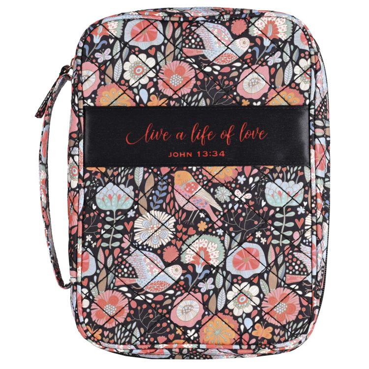 Quilted Polyester Material Bible Cover With Open Front Pocket And Reference Band. Inside Features Include A Ribbon Bookmark And Elastic Pen Loop. XLarge Size 10-1/4 inches by 2 inches by 7-1/4 inches Height. White Dove Design.