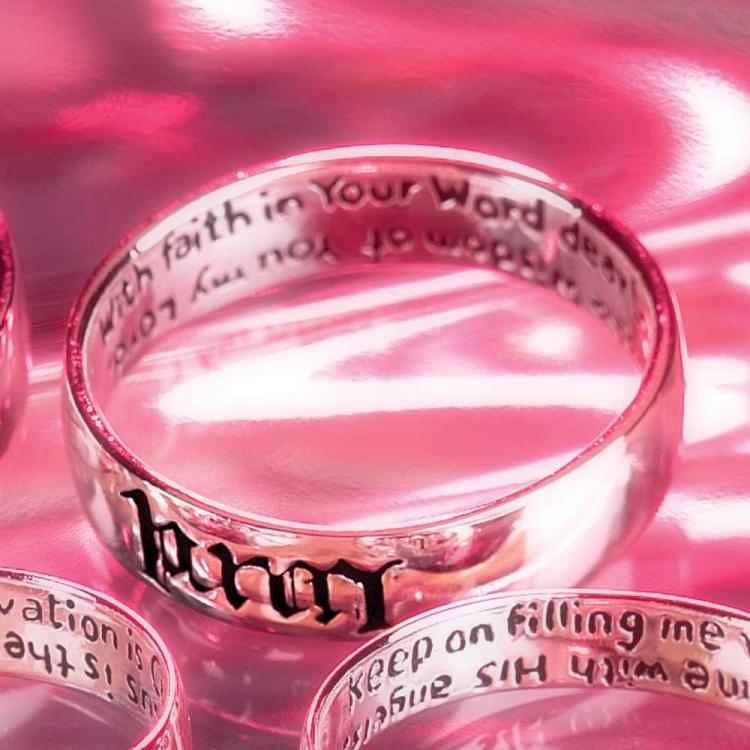 These unique Sterling Silver ambigram rings are 2 rings in one! Each ring is engraved on the outside with an inspirational word that transforms into another when the ring is flipped. 2 verses are engraved on the inside of the band, one to compliment each inspirational word. 2 women’s and 2 men’s designs, all come packaged on an attractive card.