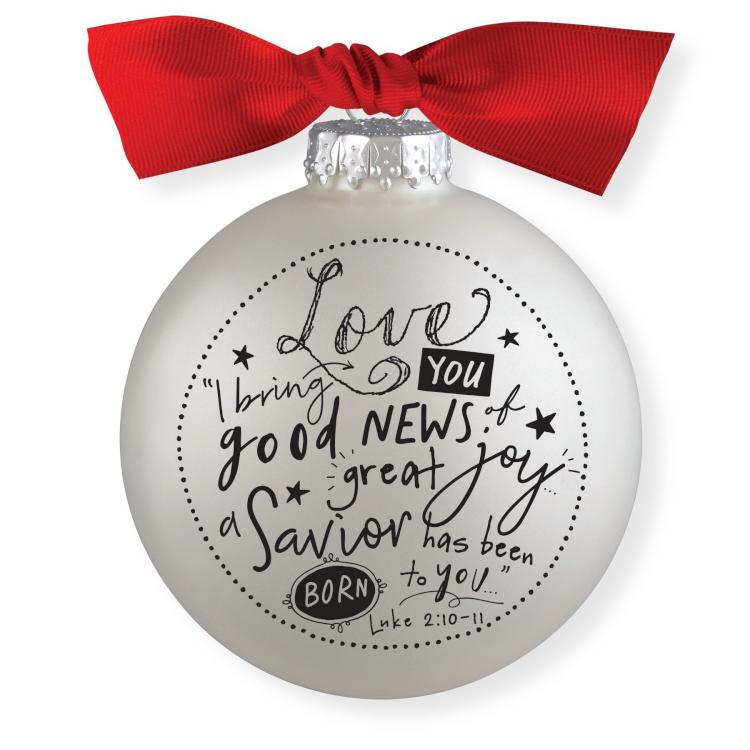 God’s word is written in a whimsical font on this lovely white satin finish glass bauble ornament. With a red ribbon for hanging, this classic style ornament is perfect for any Christmas tree. Comes in a gift box with ribbon to hang. This gift makes a difference. Through partnership with the nonprofit, A Better Life For Kids, orphans and children with special needs are given healthy meals, clean water, safe housing, and education opportunities in Ghana, Africa. Material: glass, ribbon. Size: 4″” diameter