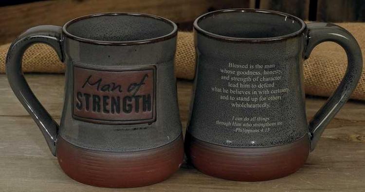 Mug is handcrafted of microwave/dishwasher safe stoneware with a pottery glazed finish and features a clay look accent on front and message on back. Protective white box. 20 oz.; 4 7/8″. Min. order of two. Handcrafted-natural variations will occur.