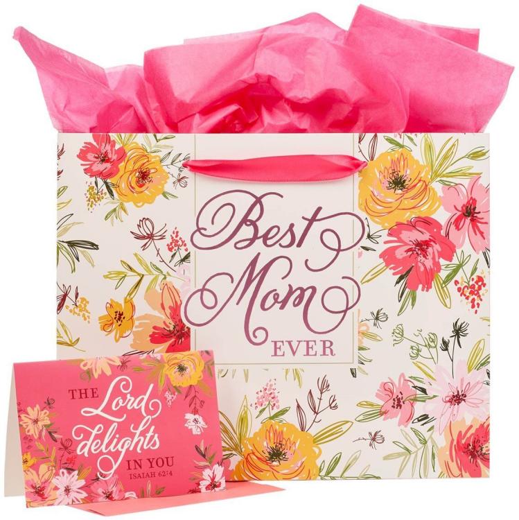 Show your mom how much she is cherished when you wrap her Mother’s Day gift in the Best Mom Ever Pink Floral Large Gift Bag with Card and let the warm and fuzzy feelings reign.