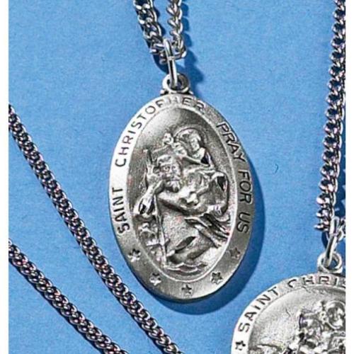Pewter Oval St. Christopher Medal w/ 24in Chain