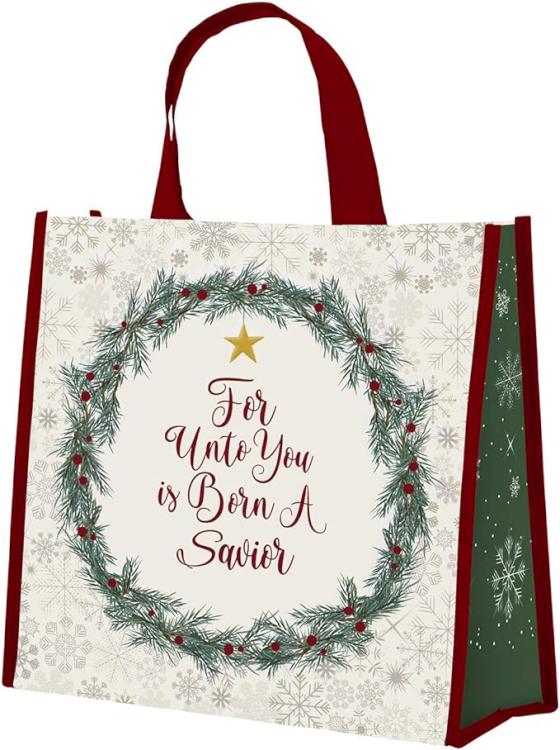 Christmas Tote bag in recycled nylon; pretty Christmas wreath design