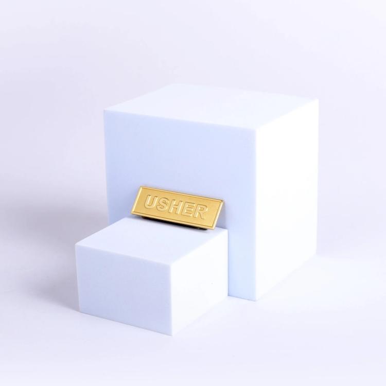 “Featuring “”Usher”” this Badge gives off a refined and polished feel to whoever wears it.Created with a satin finish background, and finely polished letters and border, this badge is perfect for Church services and events. Formed out of Brass to create a quality weighted feel without being too heavy.Functional for everyday and easy to use with its magnet attachment. The magnet creates a firm hold through clothing to keep badge in place with no damage to clothing. Perfect for Church services and events. 2.125″” Wide x .625″” Tall.”