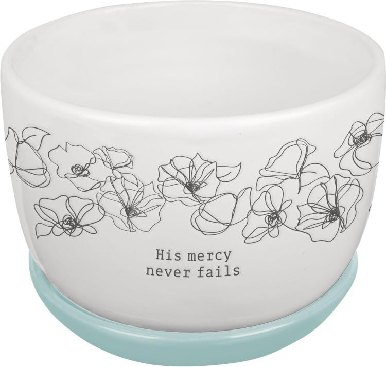 Let the Mercy White and Light Blue Planter Pot with Saucer bring new life to a hardworking plant and extra encouragement to your household or dorm room with its encouraging message. What joy can be ours if we would always remember God’s endless love and mercy? This cute ceramic planter pot will remind you of this truth every time you look at it.